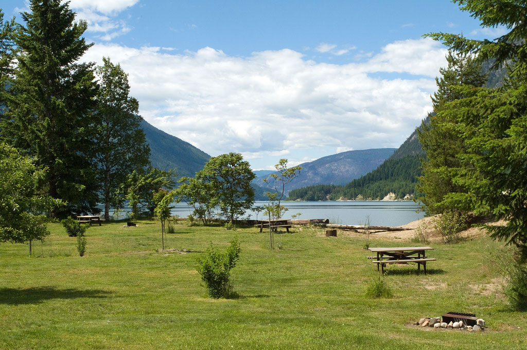 Family-oriented camping on the shores of the Arrow Lakes.